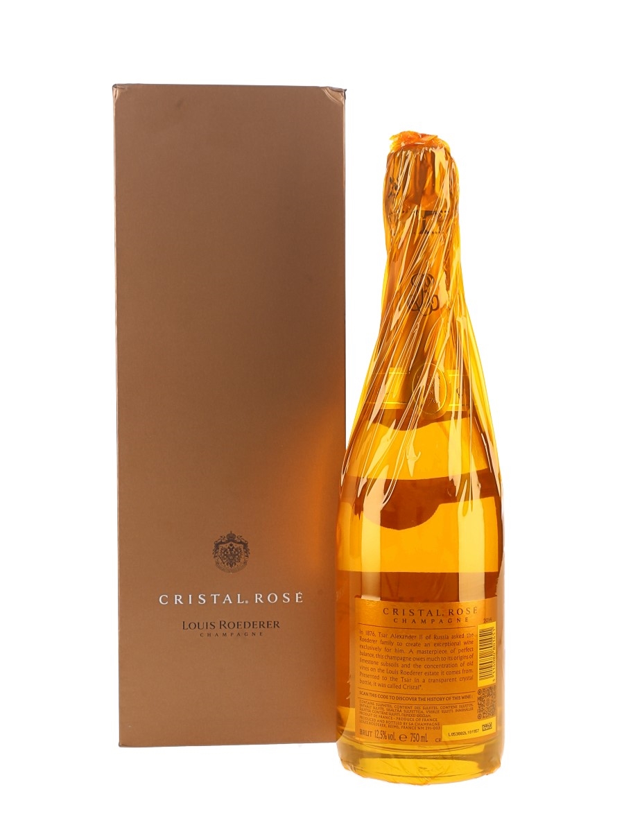 A bottle of 2014 vintage Louis Roederer Cristal rosé .