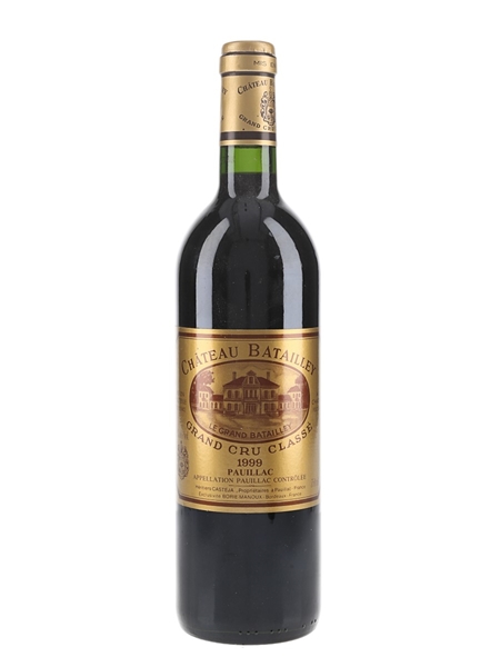 A bottle of 1999 Grand Vin de Château Batailley from Bordeaux's Pauillac appellation. A 'fifth growth' in the 1855 classification, the 55 hectare estate is planted with 70% Cabernet Sauvignon, 25% Merlot, 3% Cabernet Franc and 2% Petit Verdot.