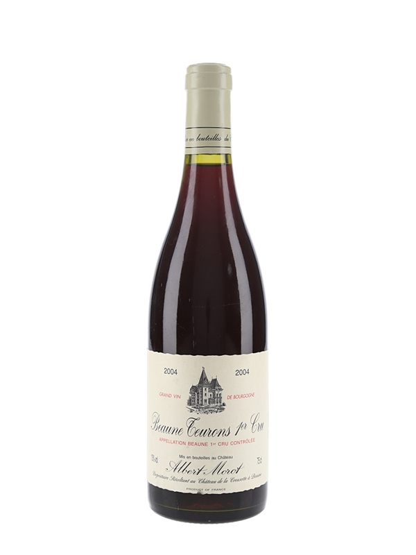 A bottle of 2004 Beaune 1er Cru Les Teurons from Burgundy producer Albert Morot.