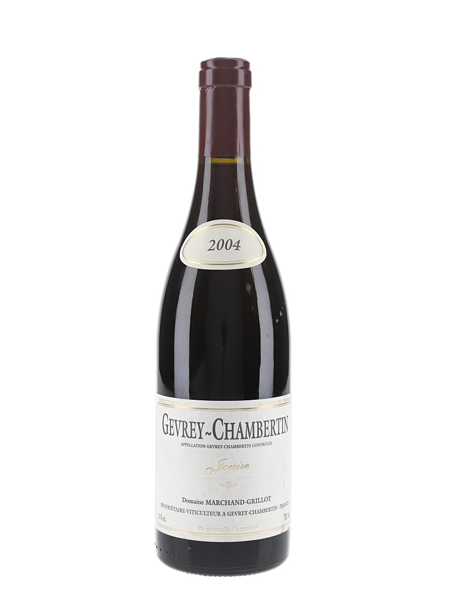 A bottle of 2004 Gevrey-Chambertin Jouise produced by Domaine Marchand-Grillot.
