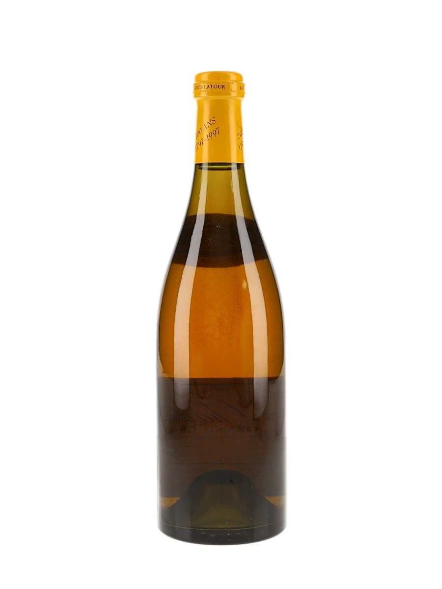 A bottle of 1998 Corton-Charlemagne Grand Cru from Louis Latour, picked from one of Burgundy's most celebrated hillside vineyards.