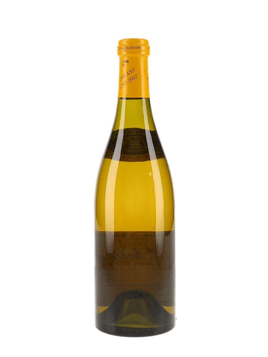 A bottle of 1998 Corton-Charlemagne Grand Cru from Louis Latour, picked from one of Burgundy's most celebrated hillside vineyards.