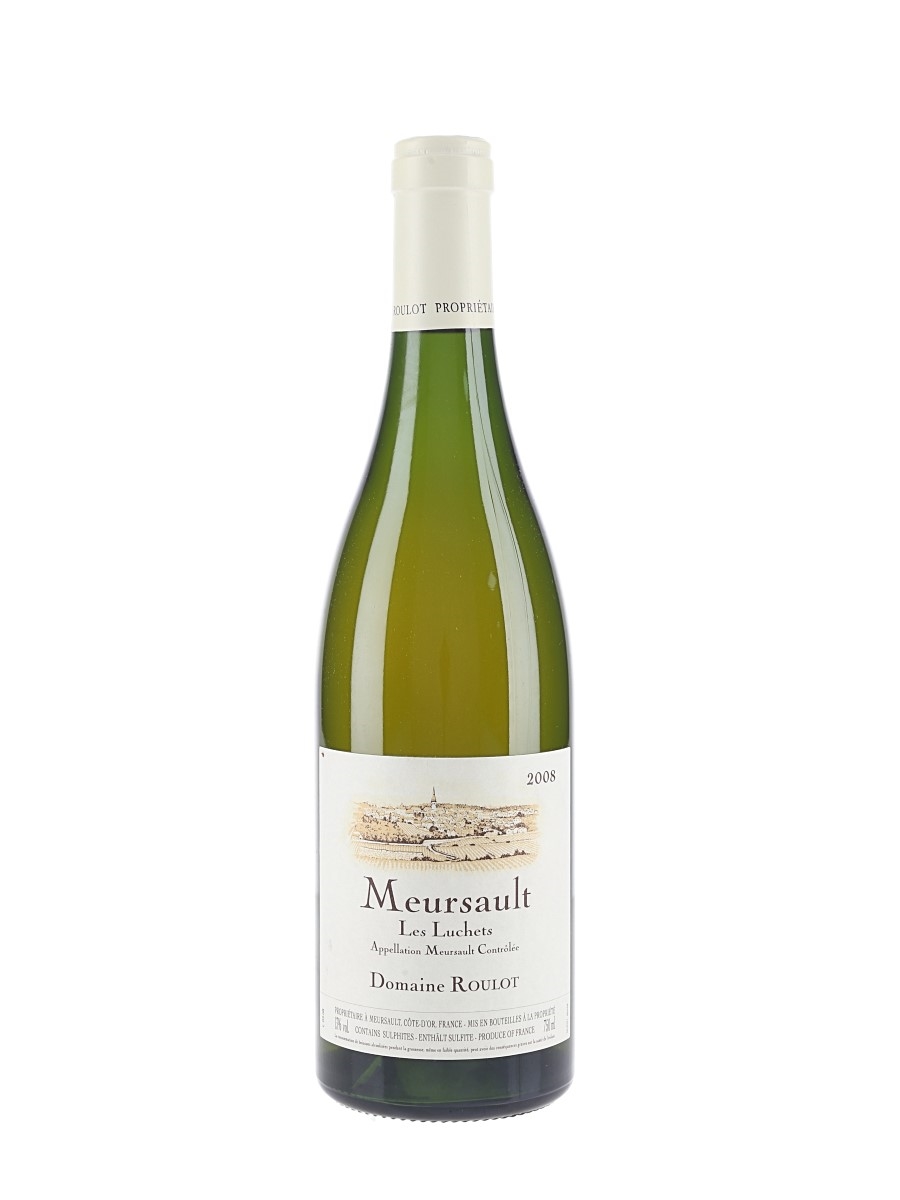 A bottle of 2008 Meursault Les Luchets from Domaine Roulot, a 16 hectare estate created by the late Guy Roulot, who pioneered single-vineyard bottlings in Meursault. Now run by his son Jean-Marc, the wines are famed for their Chablis-like minerality and precision.