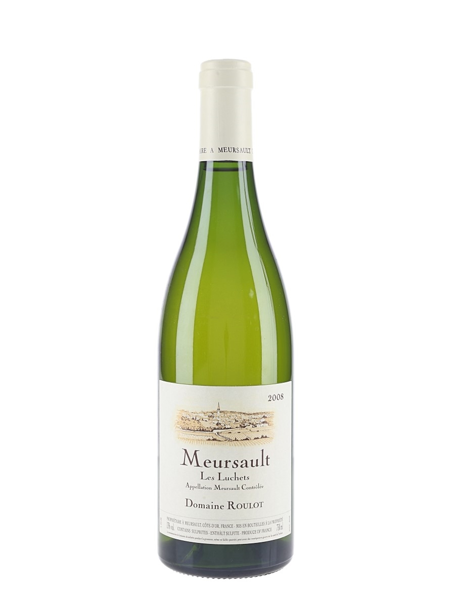 A bottle of 2008 Meursault Les Luchets from Domaine Roulot, a 16 hectare estate created by the late Guy Roulot, who pioneered single-vineyard bottlings in Meursault. Now run by his son Jean-Marc, the wines are famed for their Chablis-like minerality and precision.