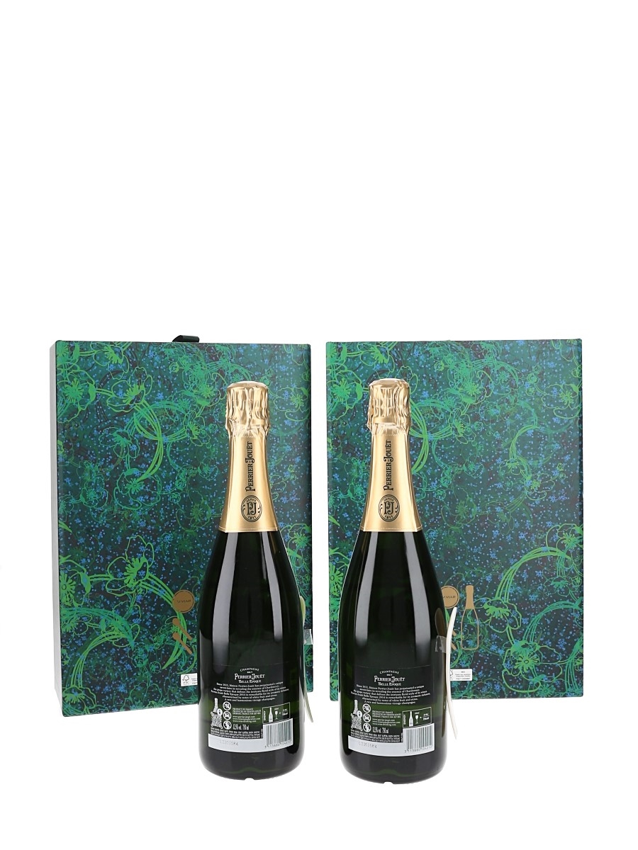 This lot contains two bottles of 2014 Belle Epoque, Perrier-Jouët's prestige cuvée Champagne. This is a mixture of 50% Chardonnay 45% Pinor Noir and 5% Pinot Meunier.