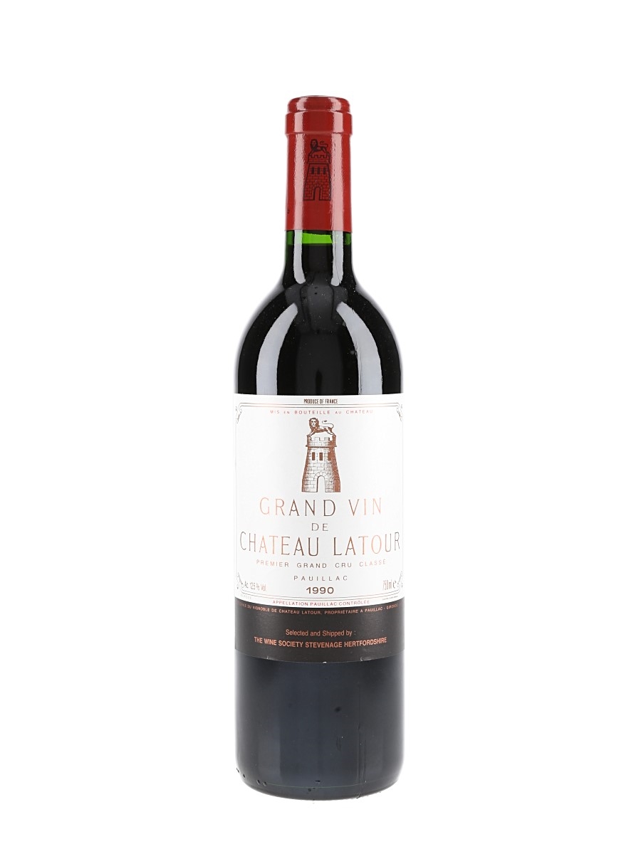 A bottle of 1990 Grand Vin de Château Latour from Bordeaux's Pauillac appellation.