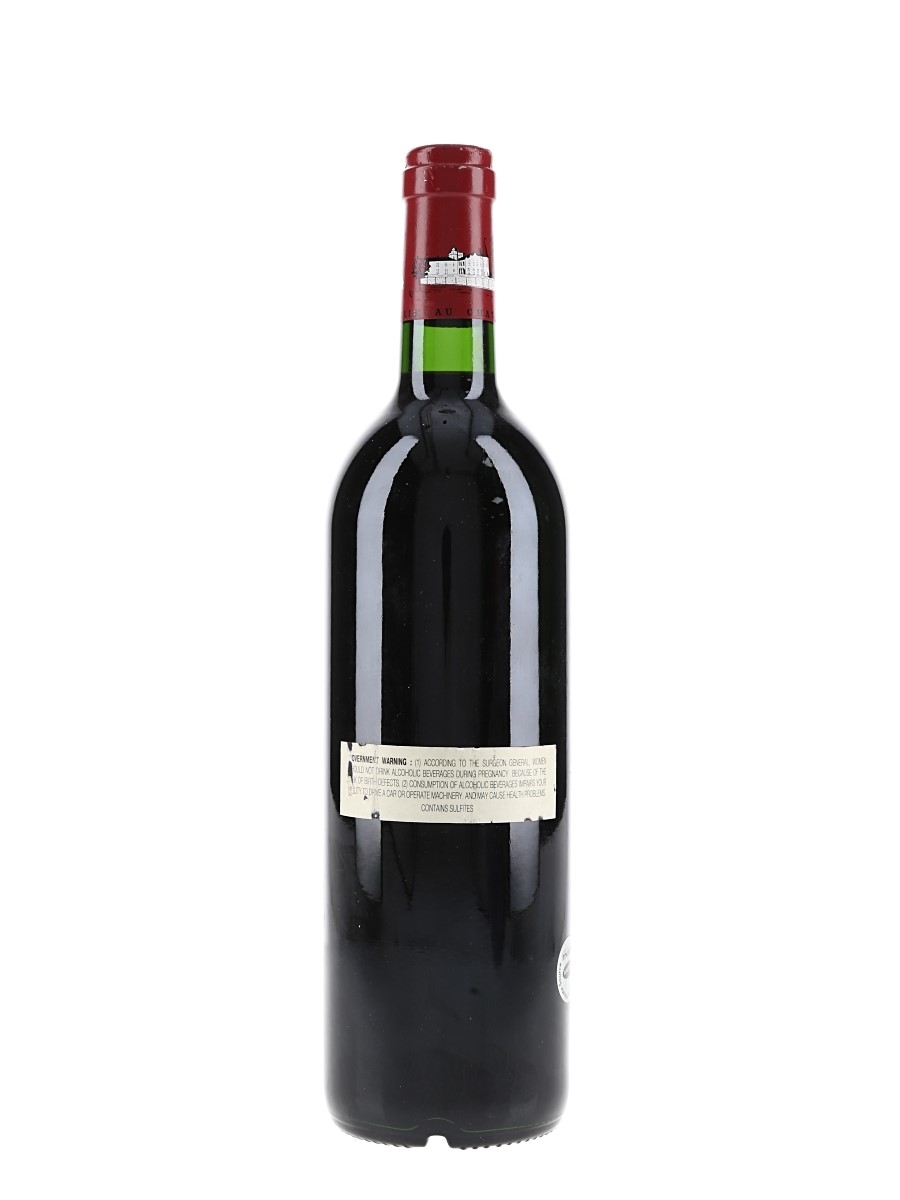 A bottle of 1996 Château Lafite Rothschild from Bordeaux's Pauillac appellation.