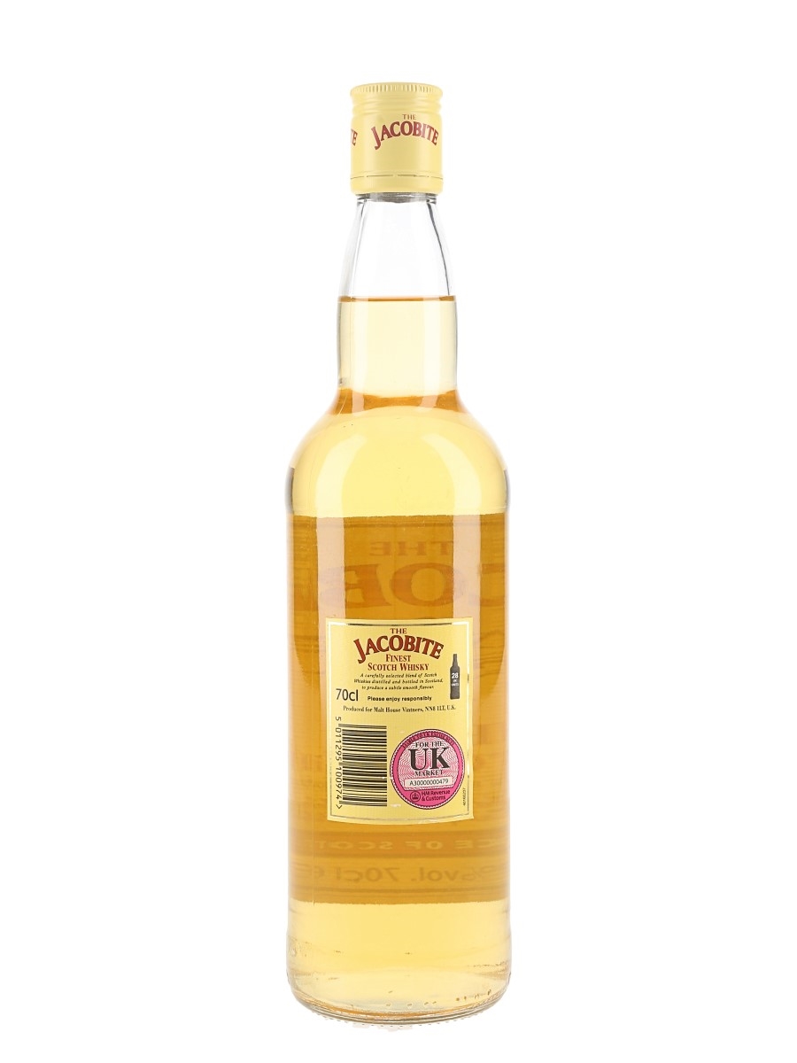 A bottle of Jacobite Finest Scotch Whisky.