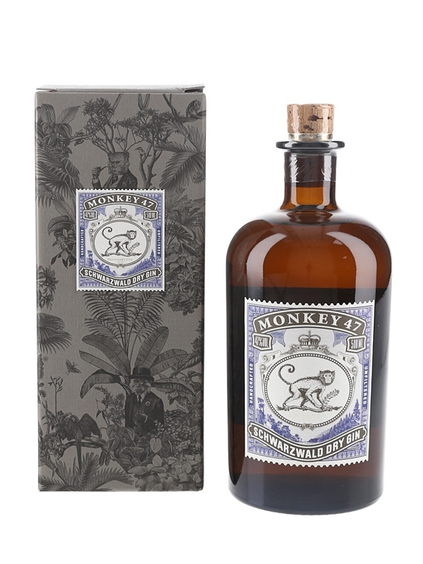 A 50cl bottle of Monkey 47 Dry Gin from Germany's Black Forest. A total of 47 regional botanicals, bottled at 47% ABV in 2020.