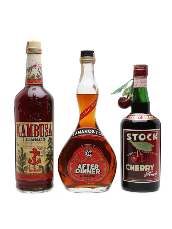 One bottle of Stock Cherry Brandy liqueur, made from Dalmatian marasca cherries. We estimate this was bottled in the 1970s.