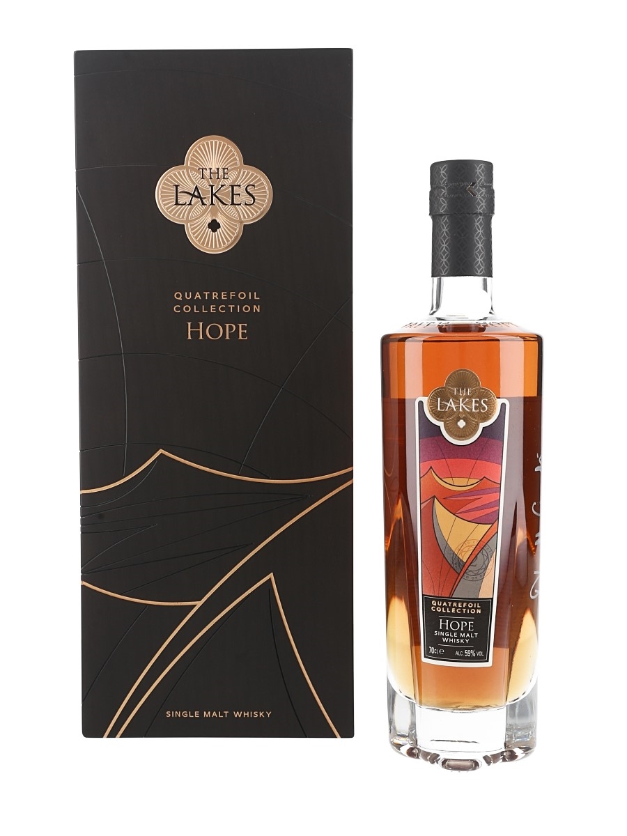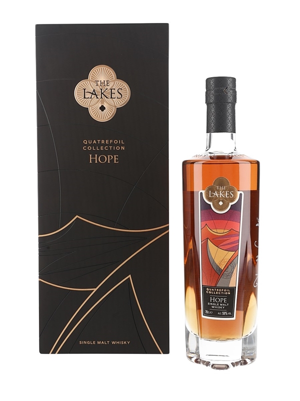 A bottle of The Lakes Quatrefoil Collection Hope English Single Malt Whisky, matured in Spanish oak Oloroso and PX hogsheads and bottled at 59% ABV. This is one of 1000 bottles produced.