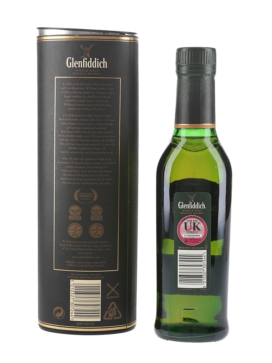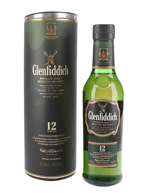 A 35cl bottle of Glenfiddich 12 Year Old Our Signature Malt Single Malt Scotch Whisky, matured in oloroso sherry and bourbon casks.