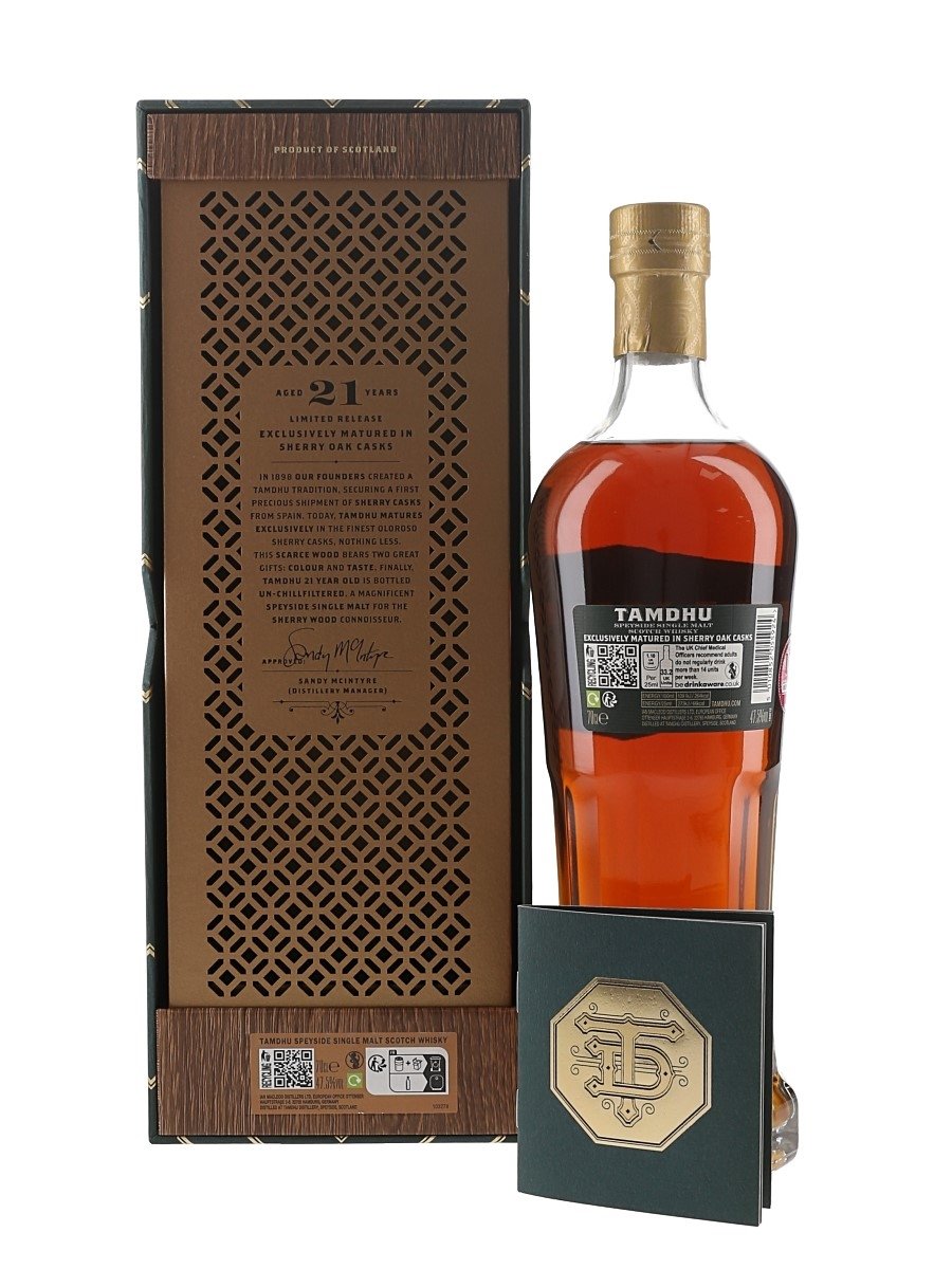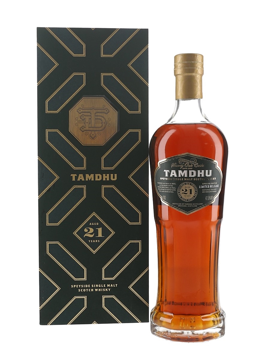 A bottle of Tamdhu 21 Year Old Speyside Single Malt Scotch Whisky, matured in a sherry oak cask. This was a limited release and bottled in 2025.