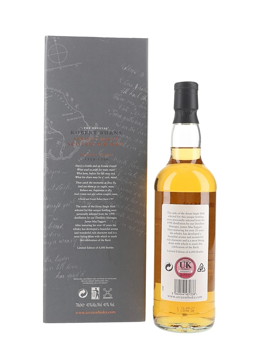 Arran 1998 10 Year Old Robert Burns 250th Anniversary 70cl / 43%