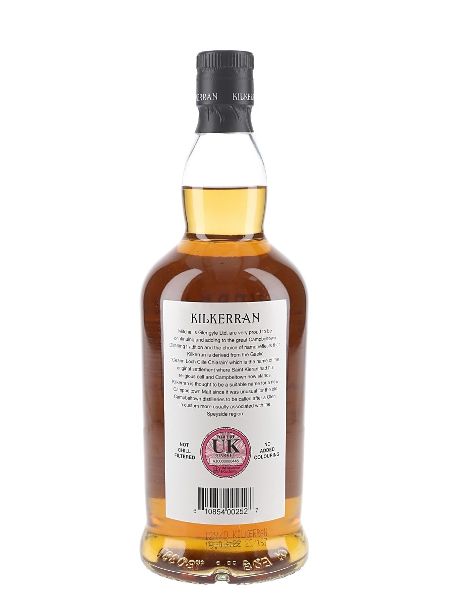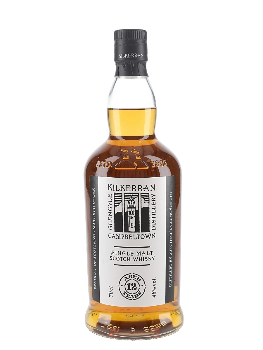 A bottle of Kilkerran 12 Year Old Single Malt Scotch Whisky, matured in a combination of bourbon casks and sherry casks.