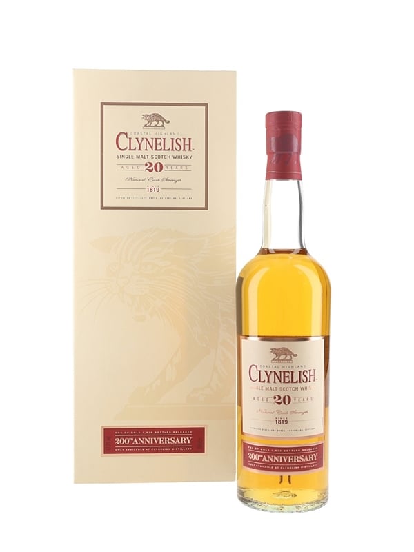 A bottle of Clynelish 20 Year Old Single Malt Scotch Whisky. This was bottled for the 200th anniversary of Clynelish distillery and was a distillery exclusive.