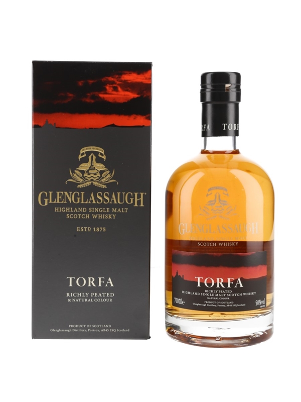 A bottle of Glenglassaugh Torfa Richly Peated Highland Single Malt Scotch Whisky.