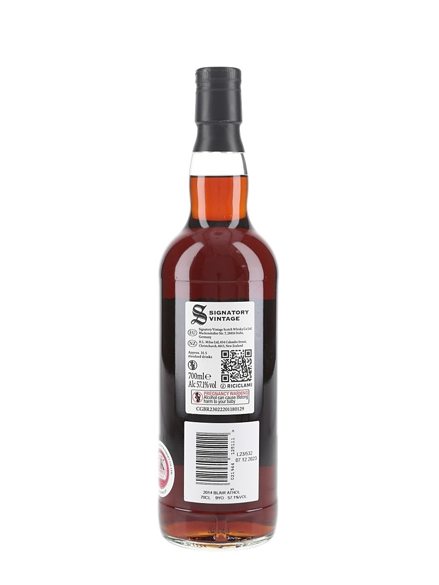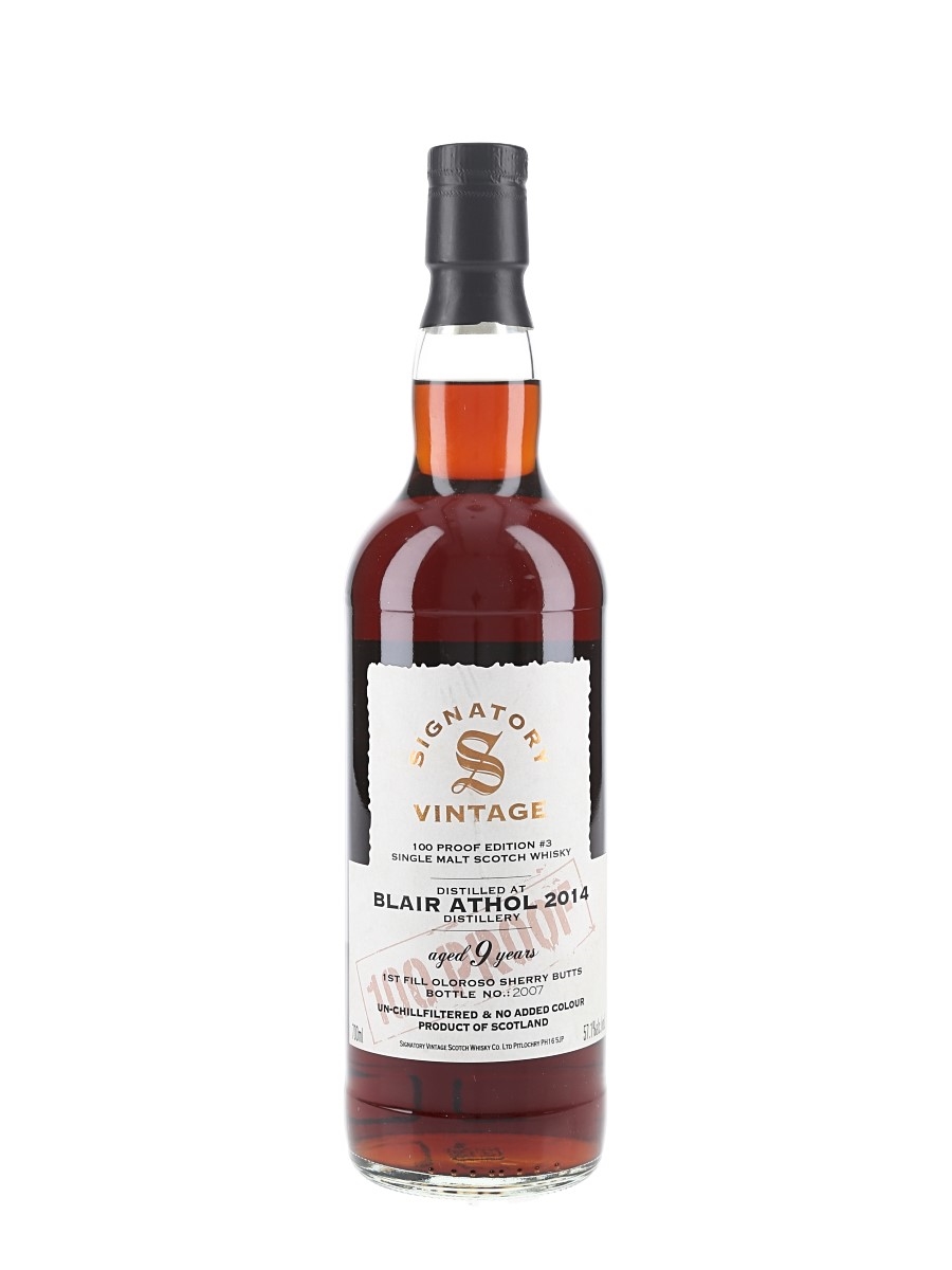 A bottle of Blair Athol 9 Year Old from independent bottler Signatory Vintage. This was distilled in 2014, matured in first fill oloroso sherry butts and bottled on 7 December 2023 as part of the 100 Proof series.