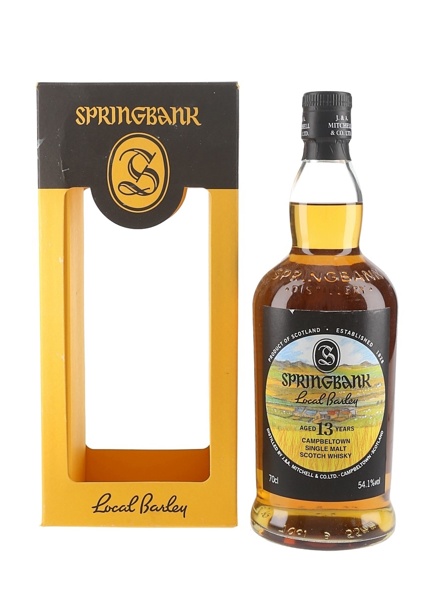 A bottle of Springbank 13 Year Old Local Barley Campbeltown Single Malt Scotch Whisky. This was distilled in June 2010 from Belgravia barley grown on Glencraigs Fam, matured for 13 years and bottled in December 2023.