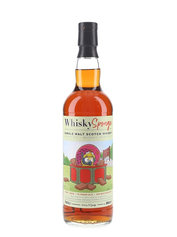 A bottle of Ballechin 14 Year Old Whisky Sponge Edition No.5 Single Malt Scotch Whisky. This was distilled in 2005, matured in a refill sherry hogshead and bottled at 55% ABV in 2020 for Decadent Drinks.