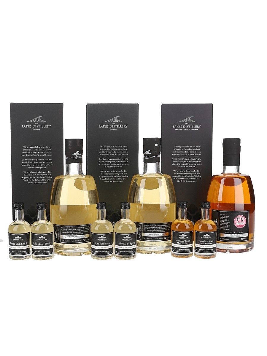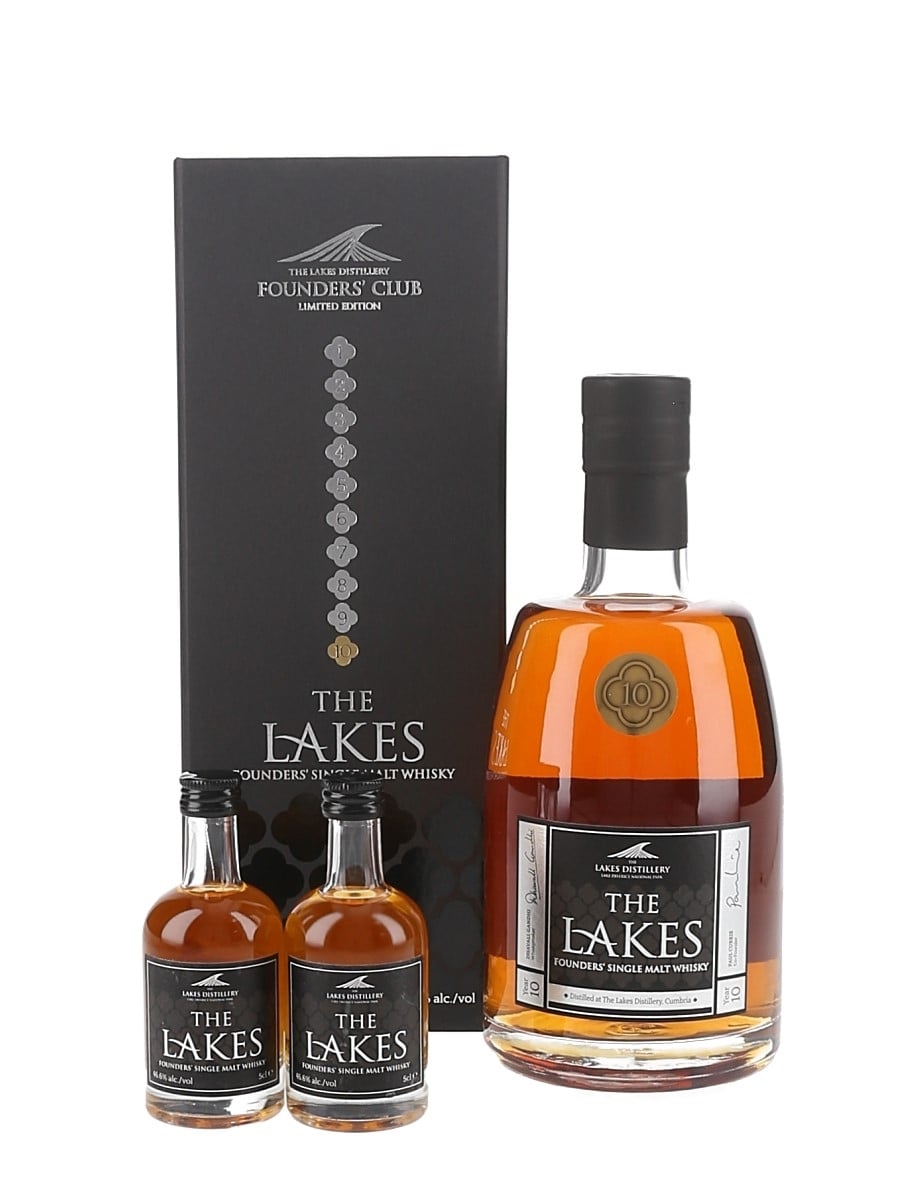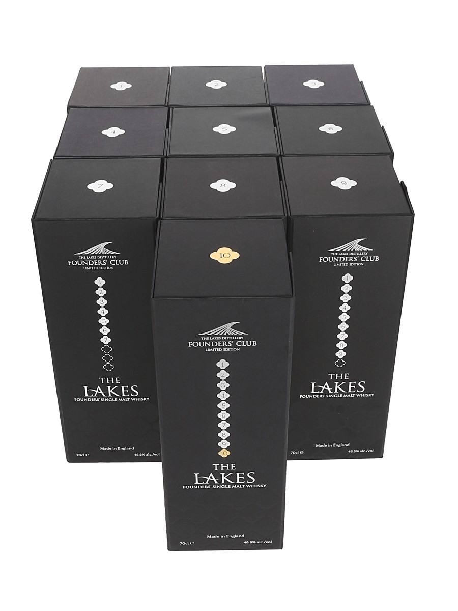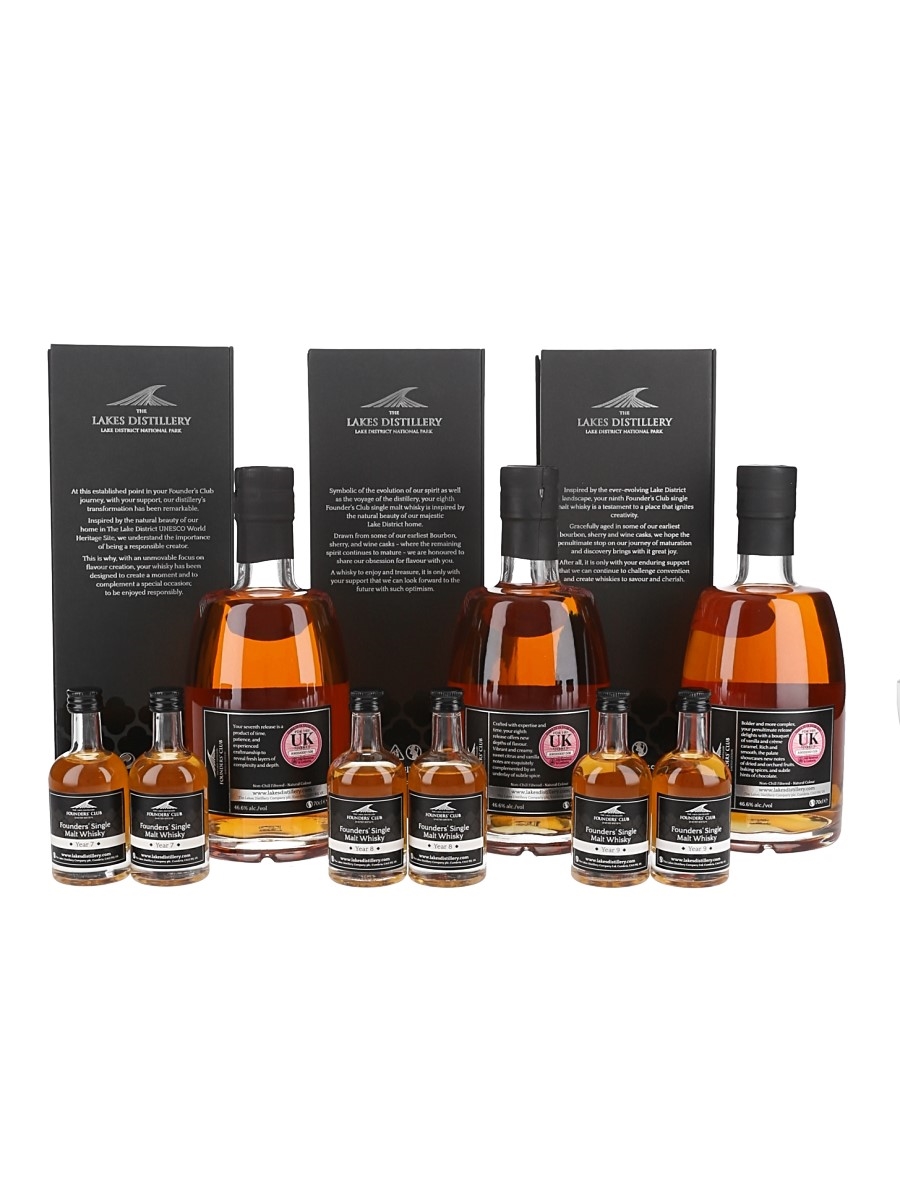 This lot contains years one to ten of the Lakes Founders' Club Single Malt Whisky. Each bottle comes with two 5cl miniature bottles of the same whisky.