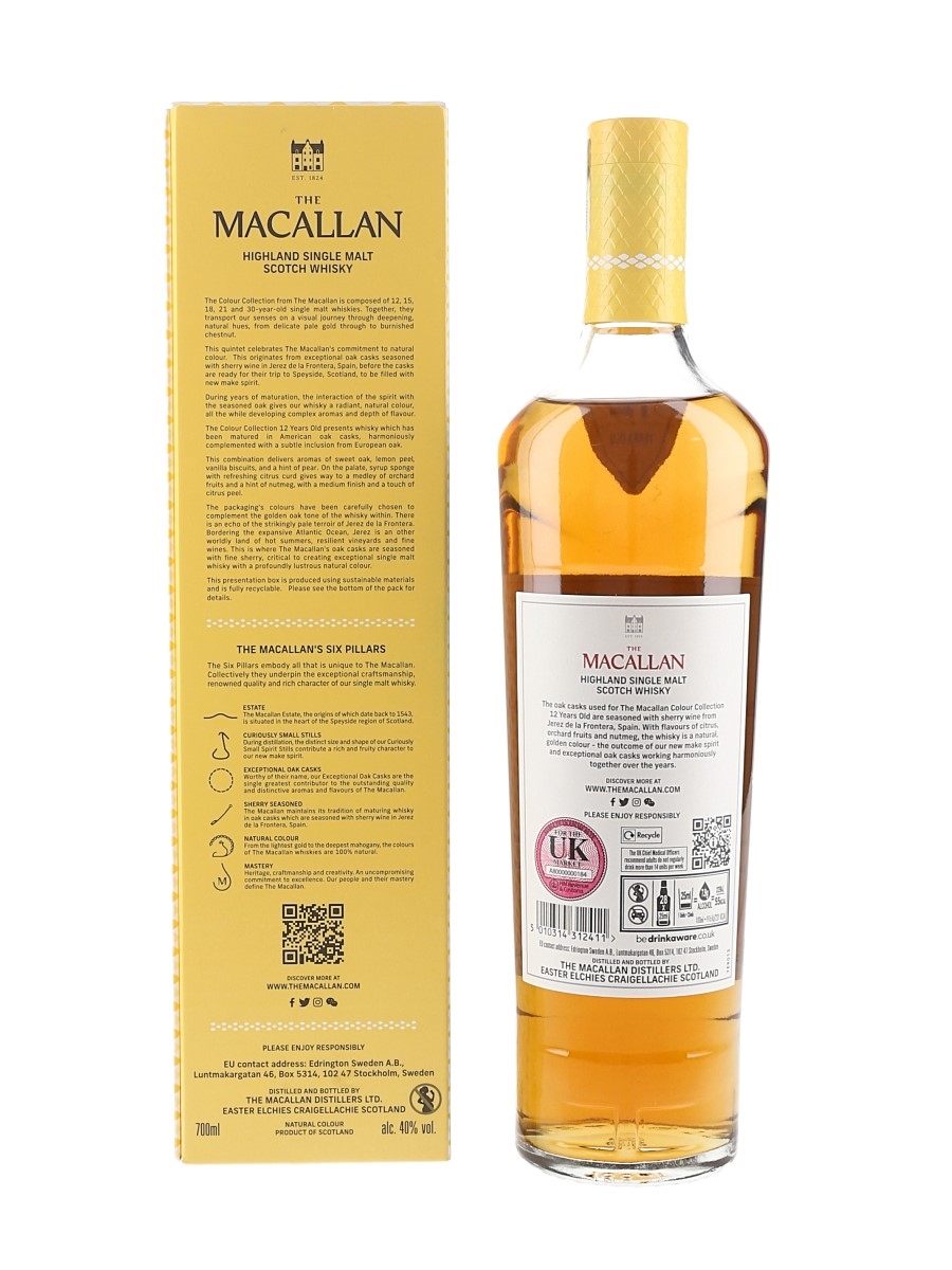A bottle of The Macallan 12 Year Old Single Malt Scotch Whisky from the Colour Collection.