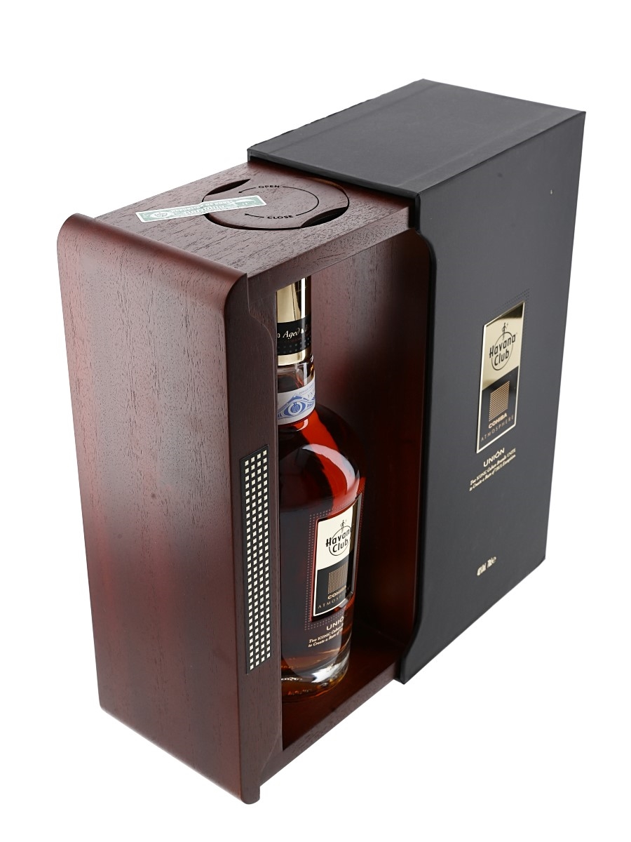 A bottle of Havana Club Unión rum from Cuba. This is a collaborative bottling created by Havana Club’s Maestro Roñero Asbel Morales and Cohiba Master Sommelier Fernando Fernandez Milian, and is designed to accompany Cohiba cigars.