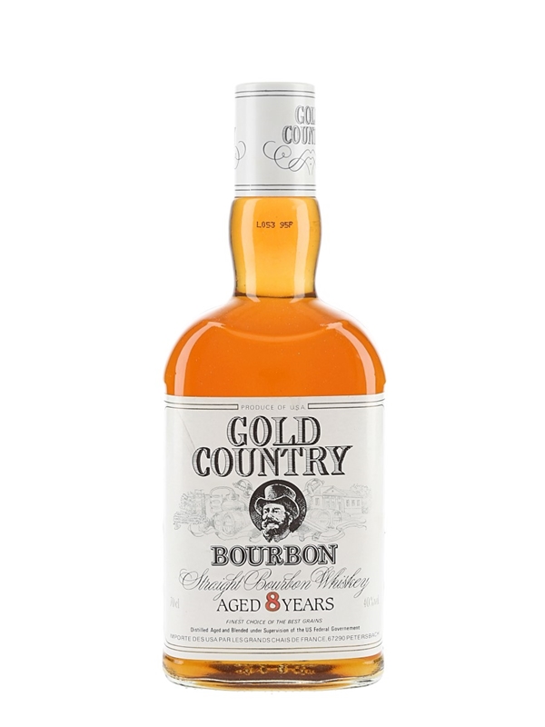 A bottle of Gold Country 8 Year Old Straight Bourbon Whiskey.