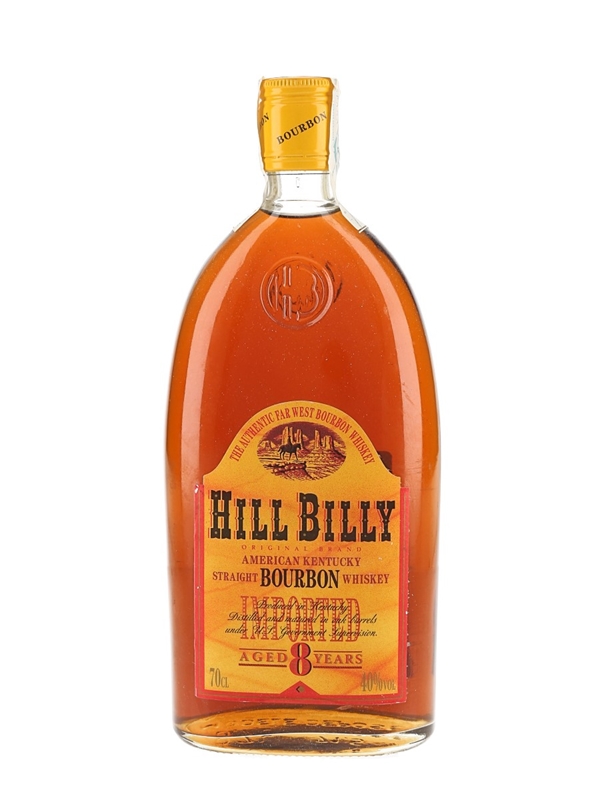 A bottle of Hill Billy 8 Year Old American Kentucky Straight Bourbon Whiskey. This was imported to the Spanish Market. We estimate this was bottled in the 1990s.