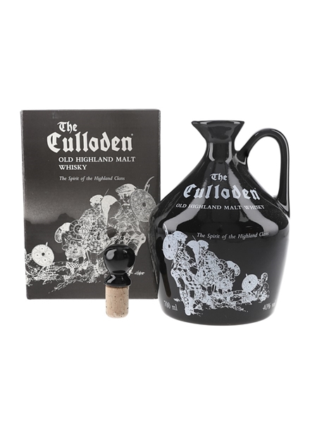 A ceramic jug of The Culloden Old Highland Malt Whisky, The Spirit of the Highland Clans. This was produced by The Cabrach Whisky Company, Kilmarnock, Scotland.