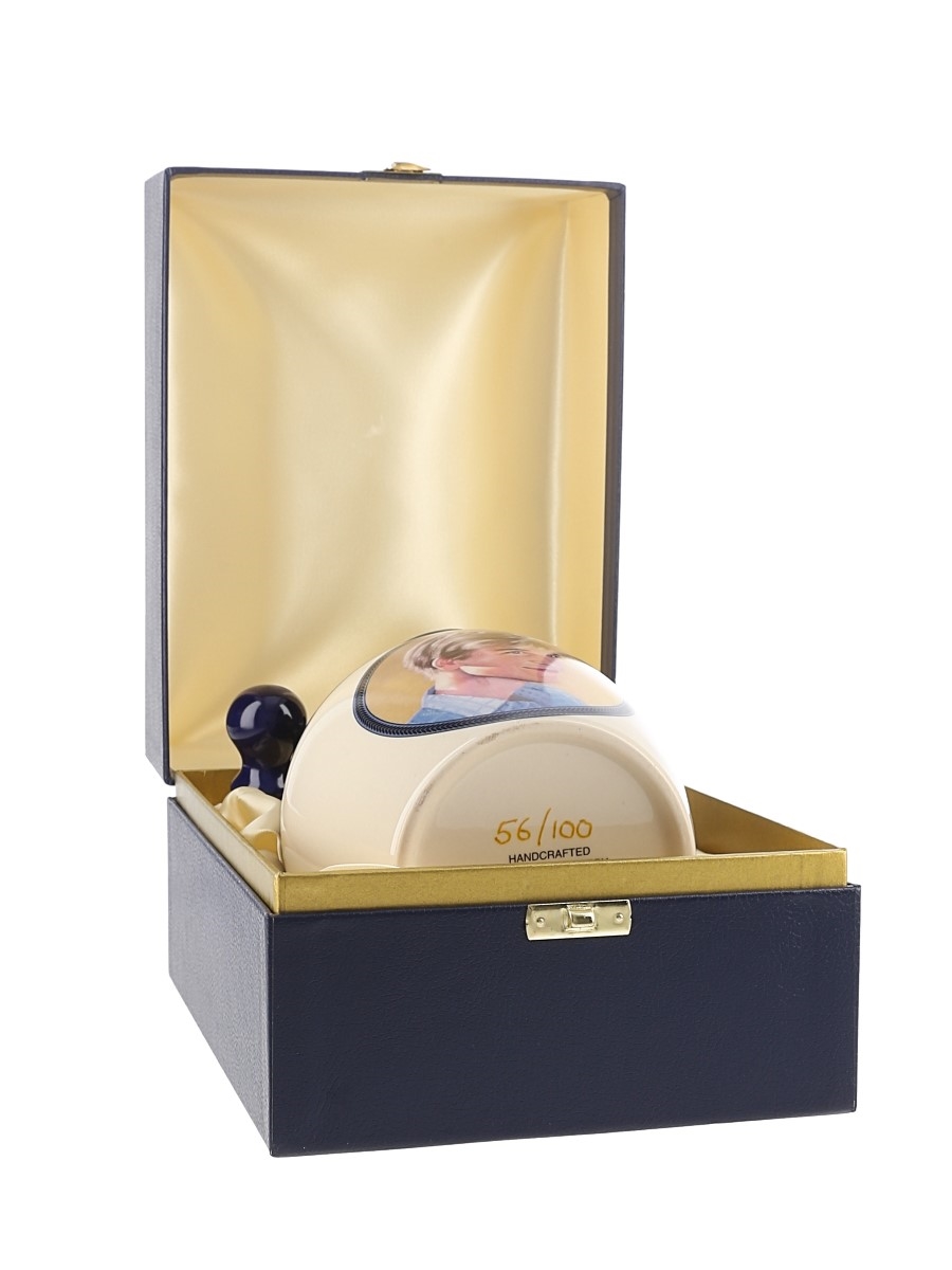 A bottle of Rutherford's Blended Malt Scotch Whisky presented in a ceramic Montrose Pottery decanter to celebrate the 18th Birthday of Prince William in June 2000. The blend is made up of a hundred different Malt Scotch Whiskies.