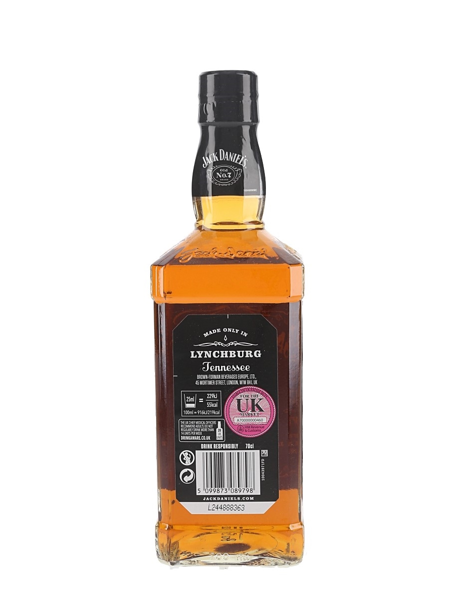A bottle of Jack Daniel's Old No.7 Tennessee Sour Mash Whiskey.