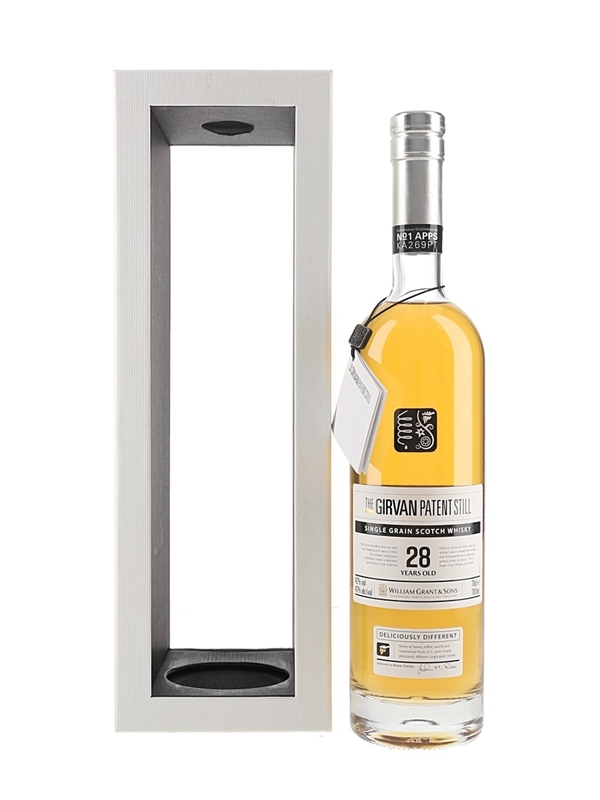 A bottle of Girvan 28 Year Old Patent Still, Single Grain Scotch Whisky. This was distilled at William Grant's Girvan distillery.