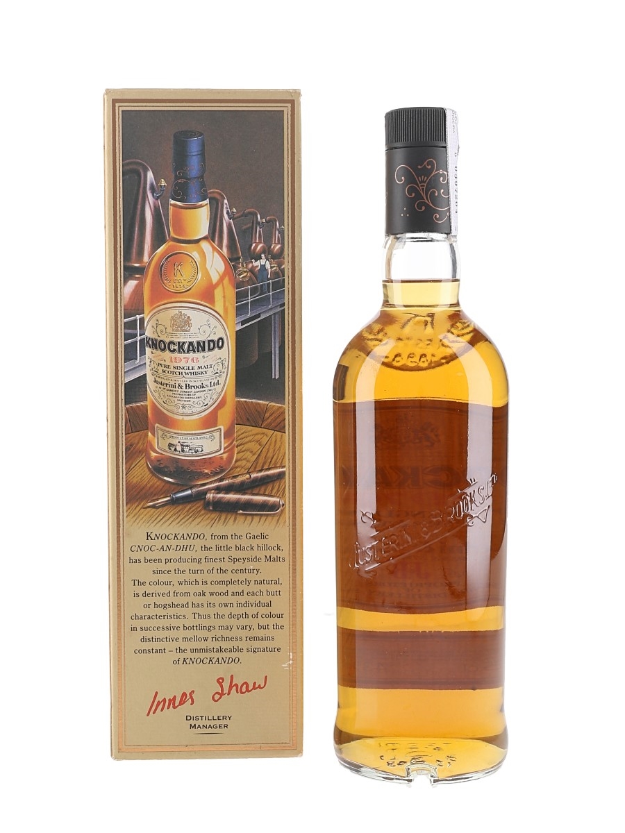 A bottle of Knockando 1976 Pure Single Malt Scotch Whisky. This was distilled in 1976 and bottled in 1990 by distillery proprietors Justerini & Brooks.