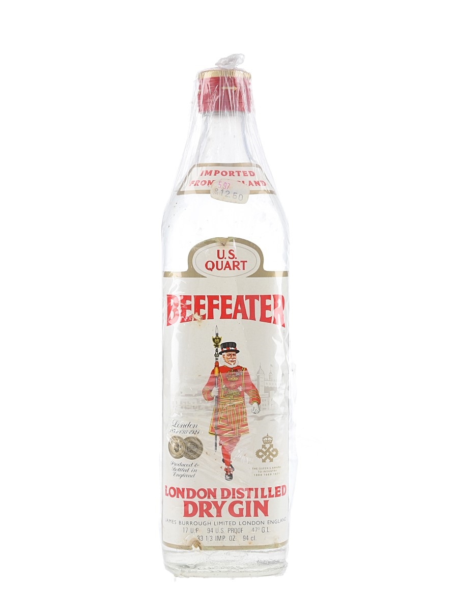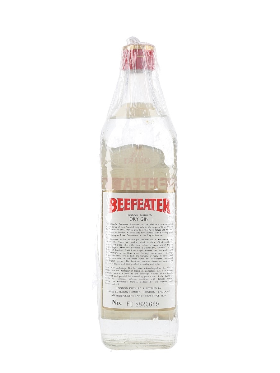 A 94cl bottle of Beefeater London Distilled Dry Gin, distilled and bottled by James Burrough Limited. We estimate this was bottled in the 1970s.