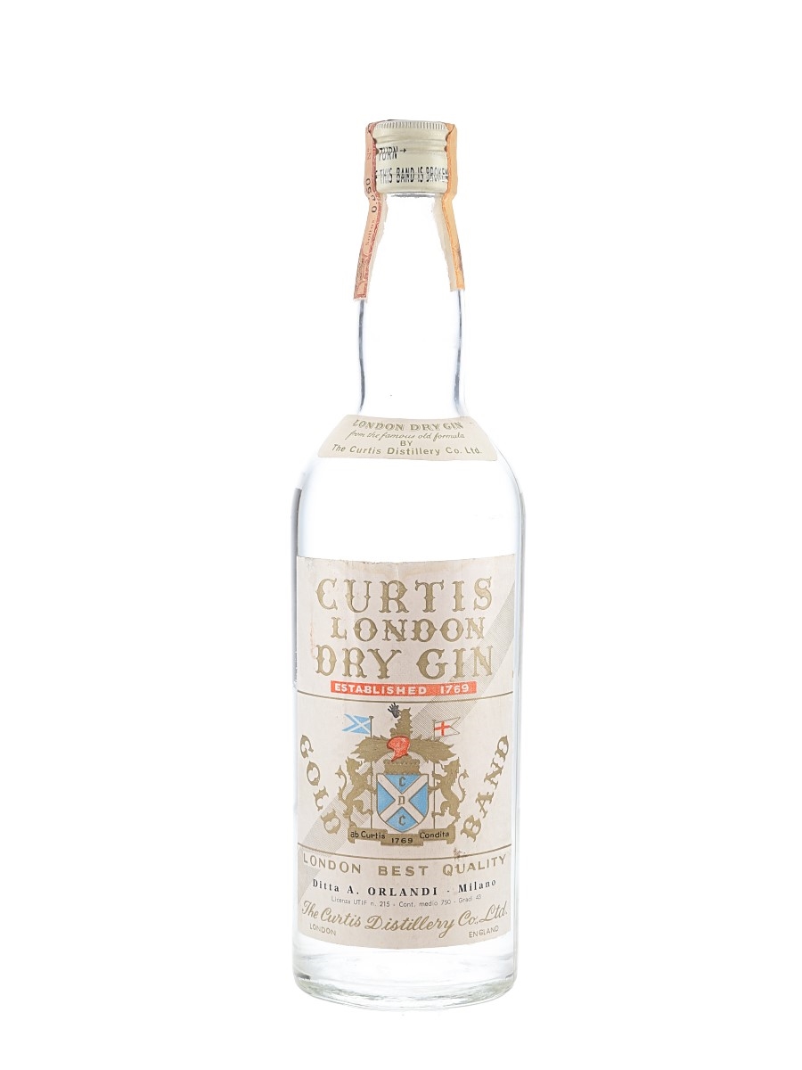 A bottle of Curtis London Dry Gin. This was imported to the Italian market by Ditta A. Orlandi, we estimate in the 1960s-1970s.