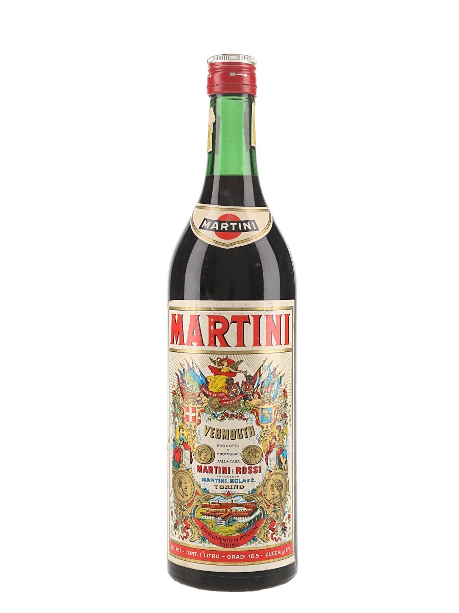 A litre bottle of Martini vermouth produced and bottled in Italy by Martini E Rossi. We estimate this was bottled in the 1960s.