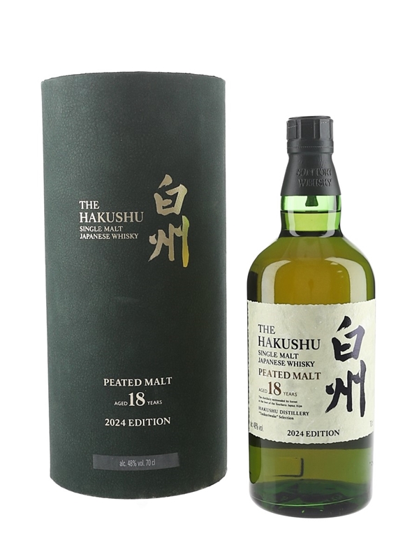A bottle of Hakushu 18 Year Old Peated Malt Single Malt Japanese Whisky. This is the 2024 edition.
