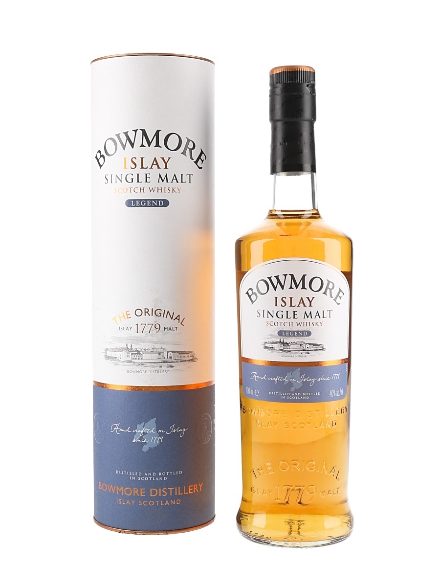 A bottle of Bowmore Legend Islay Single Malt Scotch Whisky.