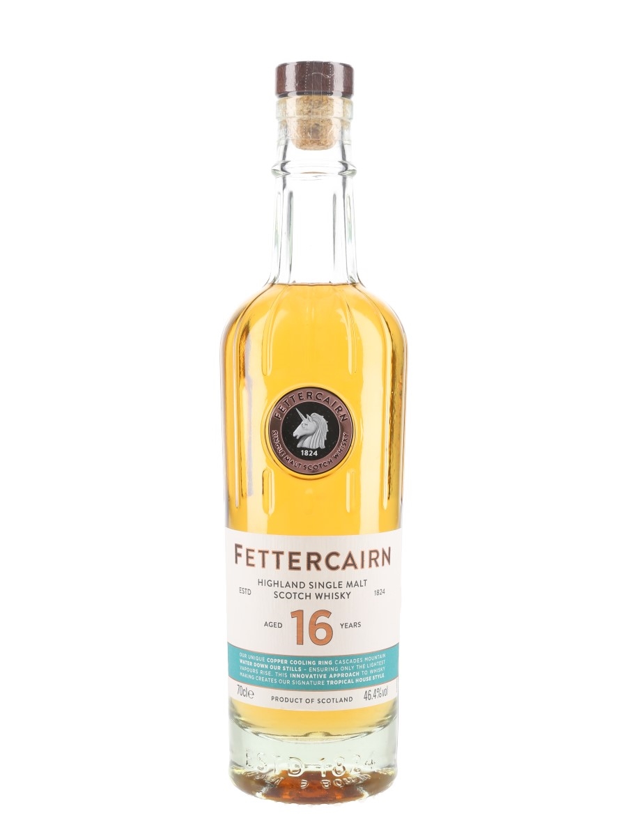 A bottle of Fettercairn 16 Year Old Highland Single Malt Scotch Whisky, matured in ex bourbon casks.