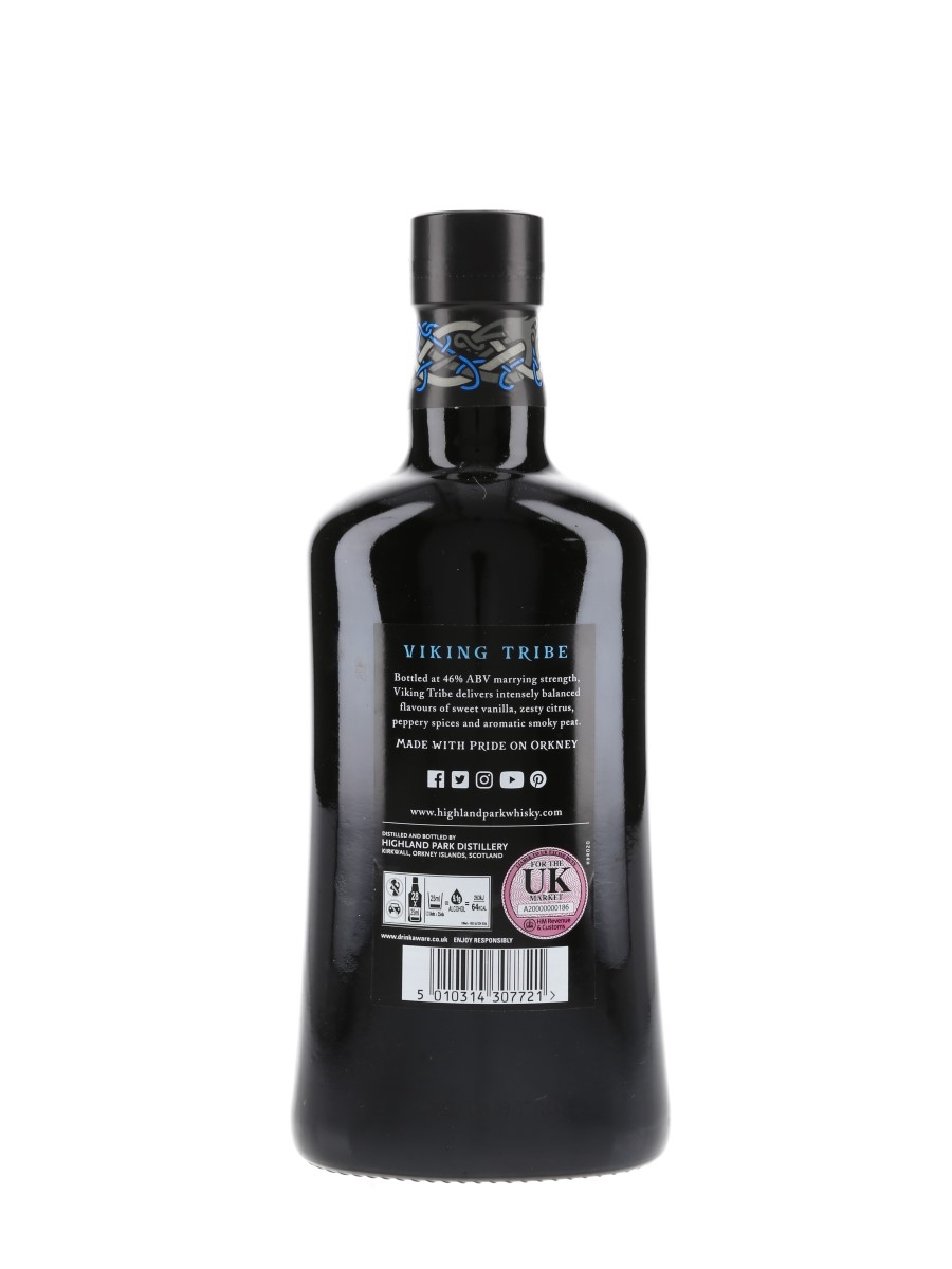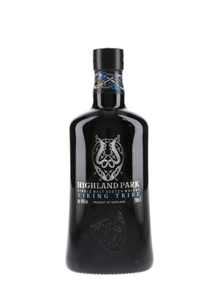 A bottle of Highland Park Viking Tribe Single Malt Scotch Whisky.