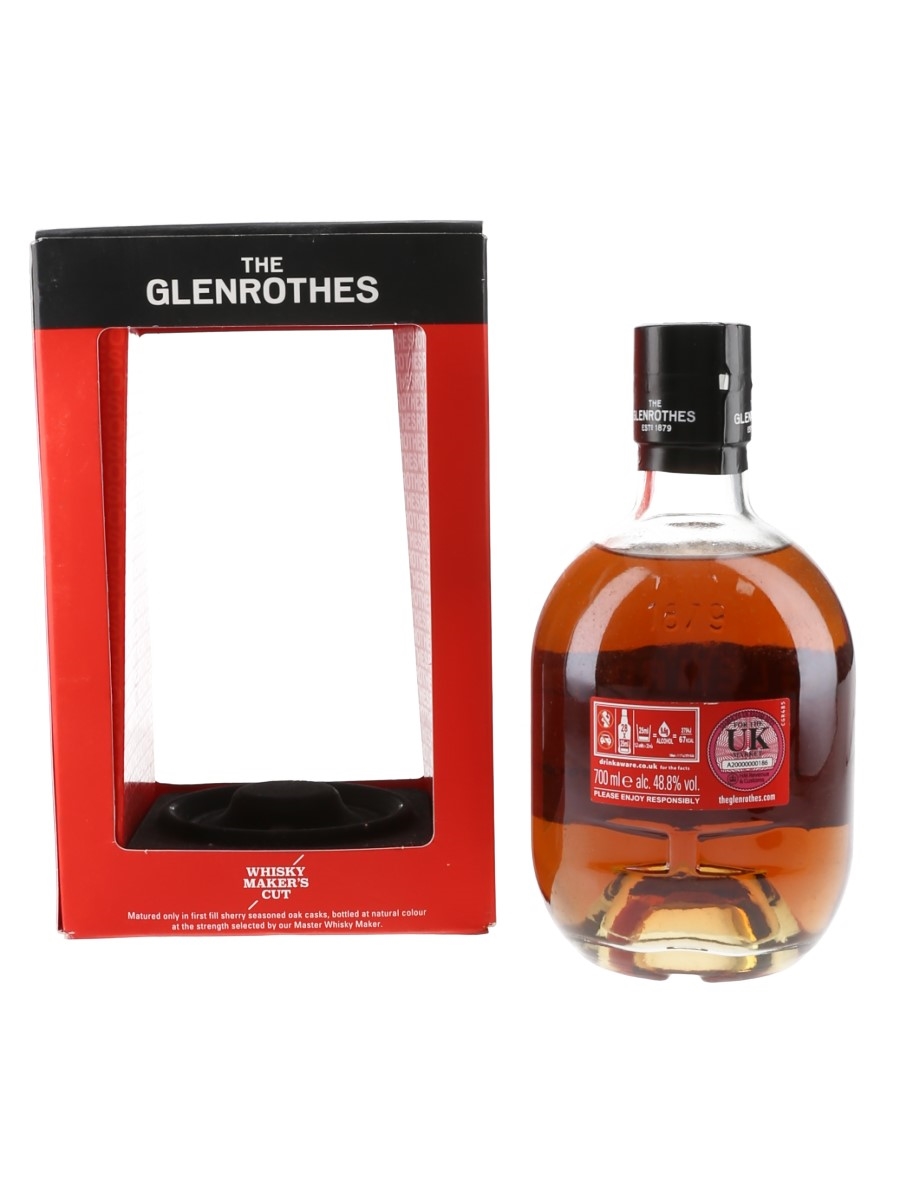 A bottle of Glenrothes Whisky Maker's Cut Single Malt Scotch Whisky. This was matured in first fill sherry casks and bottled at the strength selected by the distillery's Master Whisky Maker.