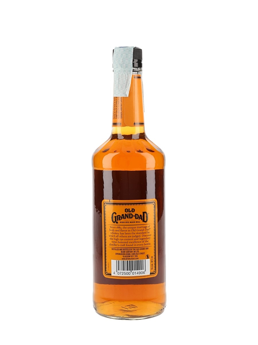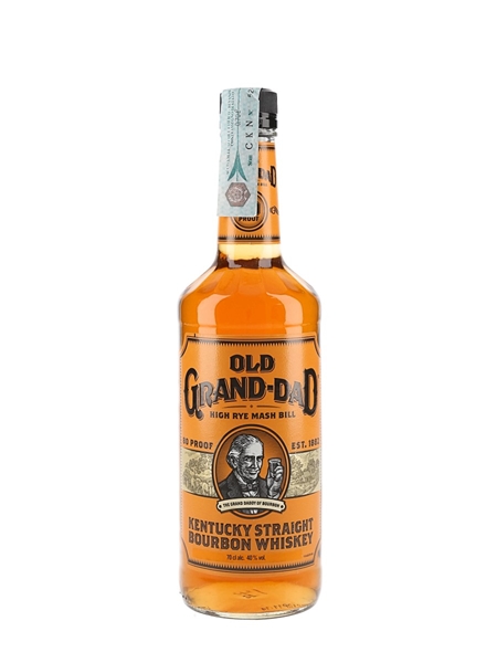 A bottle of Old Grand-Dad 80 Proof Kentucky straight bourbon whiskey.