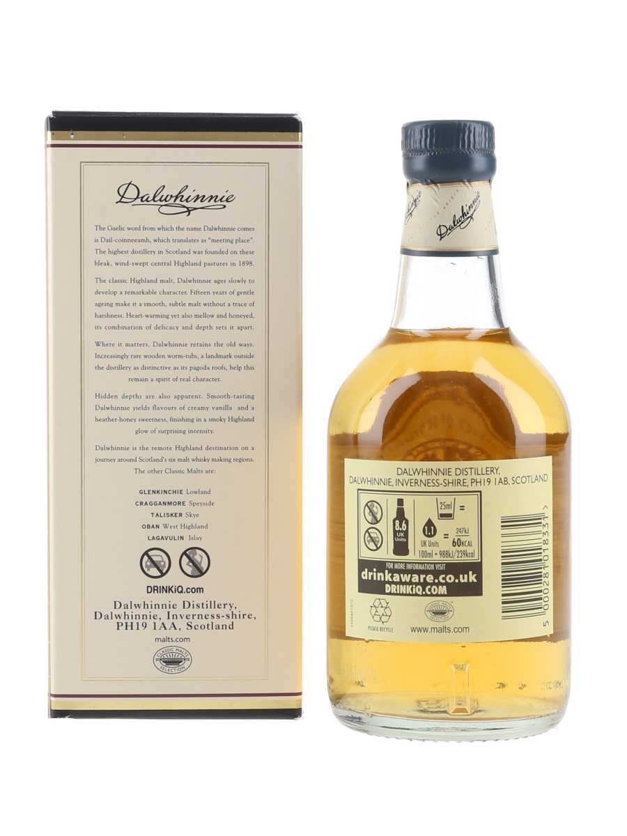 A 20cl bottle of Dalwhinnie 15 Year Old Single Highland Malt Scotch Whisky.