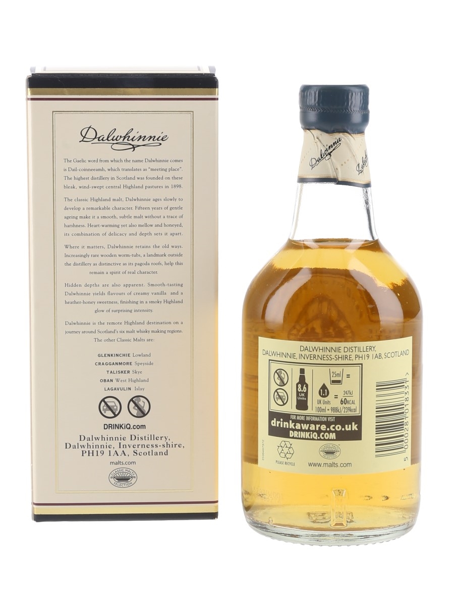 A 20cl bottle of Dalwhinnie 15 Year Old Single Highland Malt Scotch Whisky.