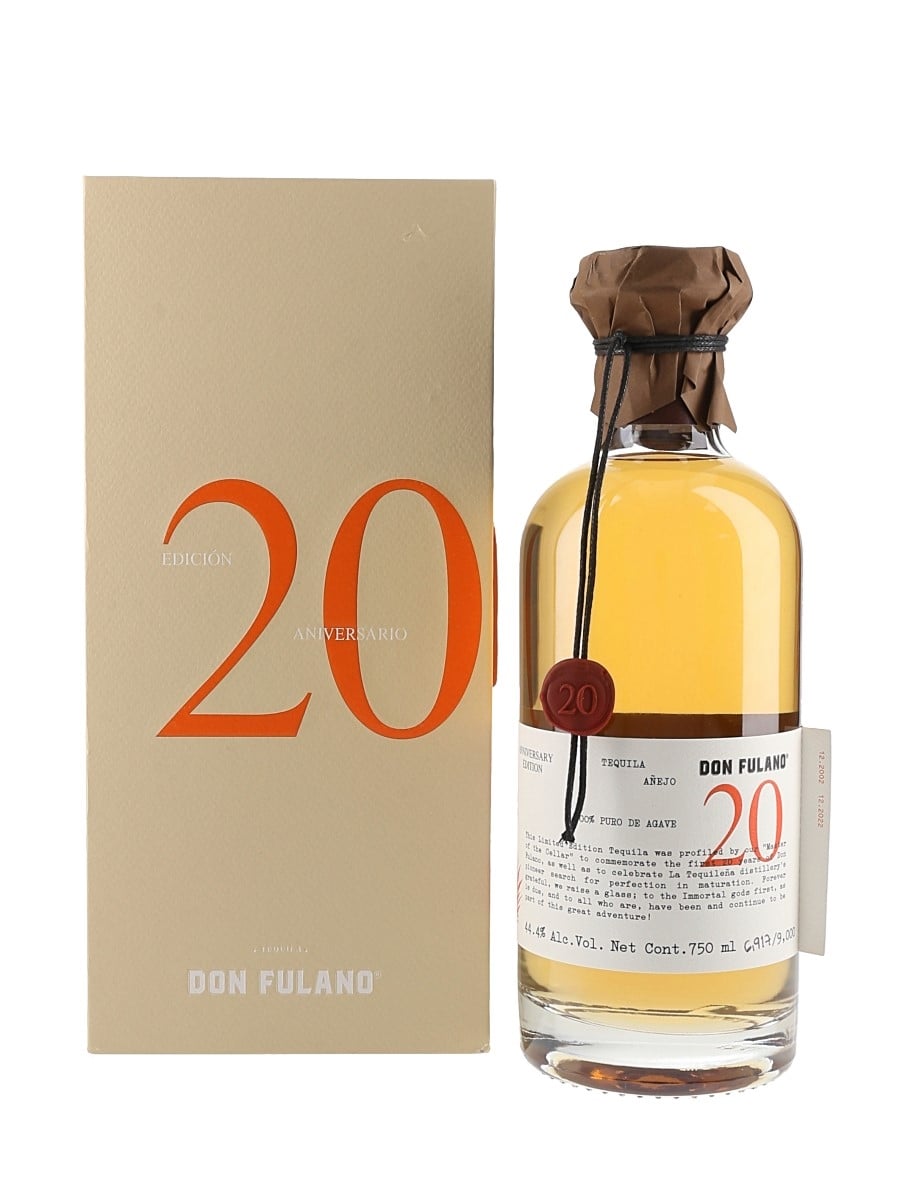 A bottle of Don Fulano Anniversary Edition Añejo Tequila. This was produced in Mexico and imported to the UK by Speciality Brands.