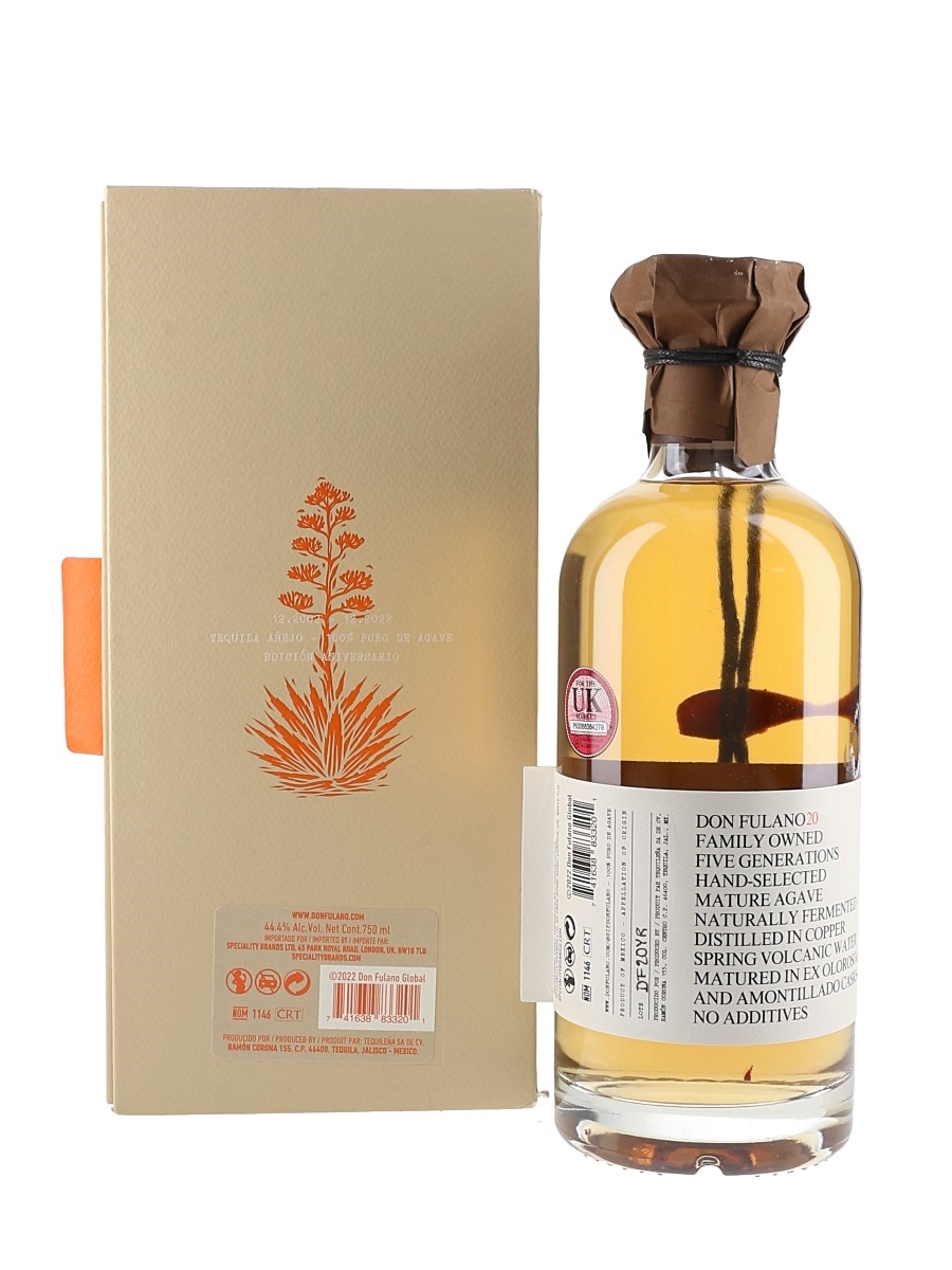 A bottle of Don Fulano Anniversary Edition Añejo Tequila. This was produced in Mexico and imported to the UK by Speciality Brands.