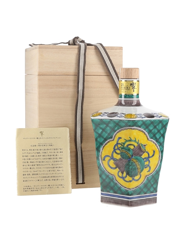 A 60cl bottle of Hibiki 21 Year Old Japanese whisky. This was released as part of an annual limited release of Arita and Kutani ceramic decanters bottled between 2001 and 2014. This is the 2013 release.