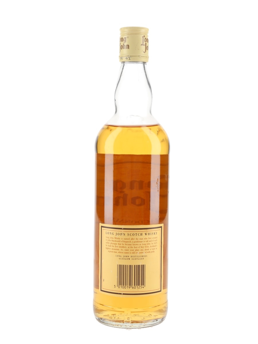 A bottle of Long John Finest Scotch Whisky. We estimate that this was bottled in the 1980s.