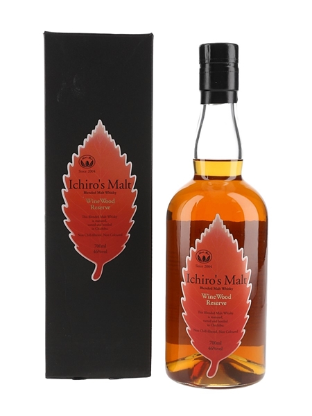 A bottle of Ichiro's Malt 'Wine Wood Reserve' which was matured, vatted and bottled at Chichibu distillery. This includes malt from the now-closed Hanyu distillery.